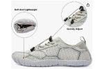 - Convenience: The elastic-shoelace with lock pull tap can quickly adjust the loose. The elastic shoes neckline and the pull tap at the heel and allows you to slip on and off quickly and easily. Our water shoes are lightweight and compressible, easy to carry and store.